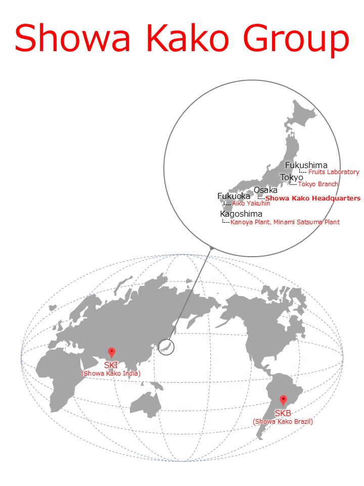 销售据点也有国内外4所(大阪・东京・新德里・圣保罗)。昭和化工有日本国内总部・子公司的生产据点5处。